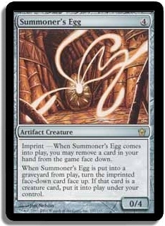 Imprint - When Summoner's Egg comes into play, you may remove a card in your hand from the game face down.