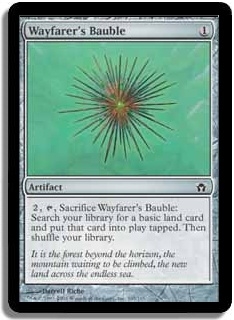 [2], [Tap], Sacrifice Wayfarer's Bauble: Search your library for a basic land card and put that card into play tapped. Then shuffle your library.