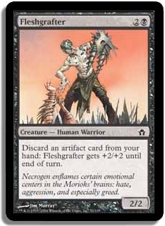 Discard an artifact card: Fleshgrafter gets +2/+2 until end of turn.