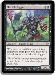 Whenever an artifact is put into a graveyard from play, you may put a +1/+1 counter on Moriok Rigger.