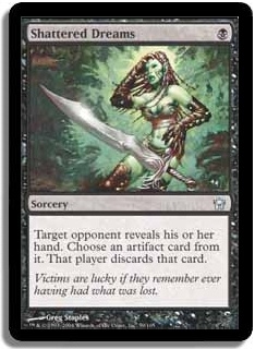 Target opponent reveals his or her hand. Choose an artifact card from it. That player discards that card.