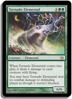 When Tornado Elemental comes into play, it deals 6 damage to each creature with flying.