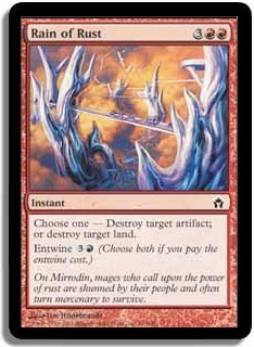 Choose one - Destroy target land; or destroy target artifact.