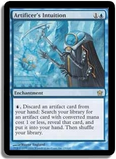 [U], Discard an artifact card from your hand: Search your library for an artifact card with converted mana cost 1 or less, reveal that card, and put it into your hand. Then shuffle your library.