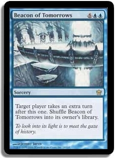 Target player takes an extra turn after this one. Shuffle Beacon of Tomorrows into its owner's library.