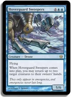 When Hoverguard Sweepers comes into play, you may return up to two target creatures to their owner's hands.
