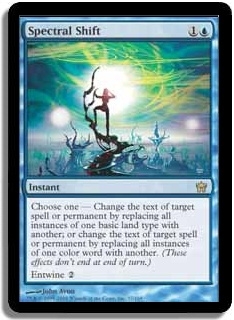 Choose one - Change the text of target spell or permanent by replacing all instances of one basic land type with another; or change the text of target spell or permanent by replacing all instances of one color word with another. <i>(These effects don't end at end of turn.)</i>