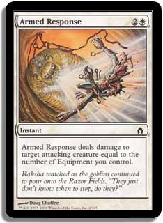 Armed Response deals damage to target attacking creature equal to the number of Equipment you control.