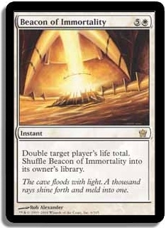Double target player's life total. Shuffle Beacon of Immortality into its owner's library.