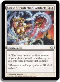 [2]: The next time an artifact source of your choice would deal damage to you this turn, prevent that damage.