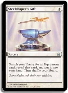 Search your library for an Equipment card, reveal that card, and put it into your hand. Then shuffle your library.