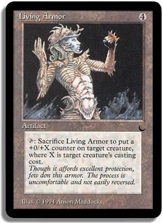 <T>: Sacrifice Living Armor to put a +0/+X counter on target creature, where X is the target creature's casting cost.