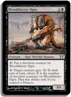 [Tap]: Target creature gets -X/-X until end of turn, where X is equal to the number of devotion counters on ~this~. Play this ability only if you control a Demon.
