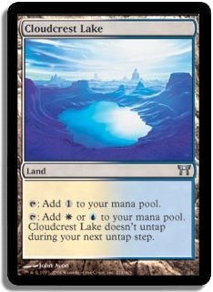[Tap]: Add [U] or [W] to your mana pool. Cloudcrest Lake doesn't untap during your next untap step.