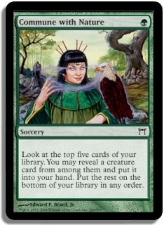 Look at the top five cards of your library. You may reveal a creature card from among them and put it into your hand. Put the rest on the bottom of your library in any order.