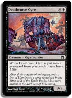 When Deathcurse Ogre is put into a graveyard from play, each player loses 3 life.