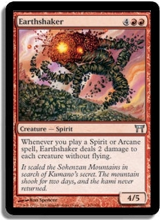 Whenever you play a spirit or arcane spell, ~this~ deals 2 damage to each creature without flying.