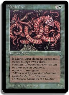 If Marsh Viper damages a player, he or she gets two poison counters. If a player has ten or more poison counters, he or she loses the game.