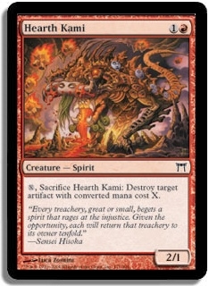 [X], Sacrifice Hearth Kami: Destroy target artifact with converted mana cost X.