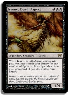 When Iname, Death Aspect comes into play, you may search your library for any number of spirit cards and put them in your graveyard. If you do, shuffle your library.