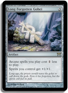 Arcane spells you play cost [1] less to play. Spirits you control get +1/+1.