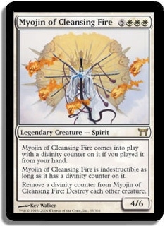 Remove a divinity counter from Myojin of Cleansing Fire: Destroy all other creatures.