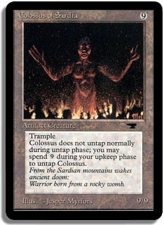 Trample. Colossus does not untap during your untap phase. <9>: Untap Colossus. Use this ability only during your upkeep.
