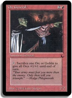 <T>: Sacrifice one Orc or Goblin to give all Orcs +1/+1 until end of turn.