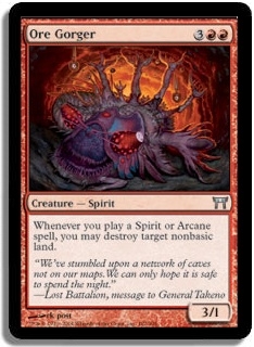 Whenever you play a Spirit or Arcane spell, you may destroy target non-basic land.