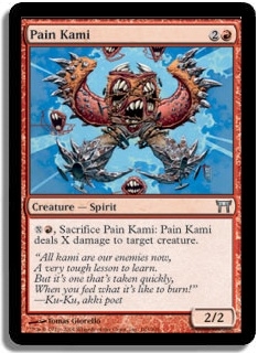 [X][R], sacrifice Pain Kami: Pain Kami deals X damage to target creature.