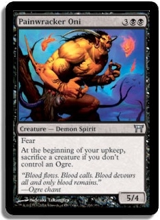 At the beginning of your upkeep, sacrifice a creature if you don't control an Ogre.