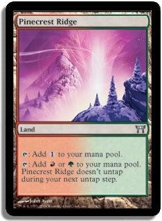 [Tap]: Add [R] or [G] to your mana pool. Pinecrest Ridge doesn't untap during your next untap step.