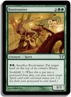 [G][G], sacrifice Rootrunner: put target land on the top of its owner's library.