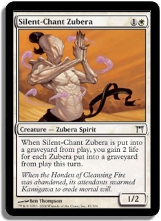When Silent-Chant Zubera is put into a graveyard from play, you gain 2 life for each Zubera put into a graveyard from play this turn.