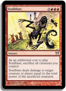 As an additional cost to play Soulblast, sacrifice all creatures you control. Soulblast deals damage equal to the total power of those creatures to target creature or player.
