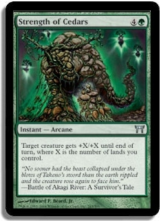 Target creature gets +X/+X until end of turn where X is the number of lands you control.