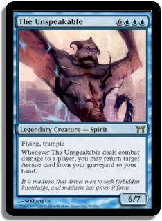 Whenever The Unspeakable deals combat damage to a player, you may return target Arcane spell from your graveyard to your hand.