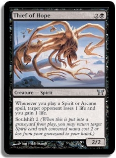 Whenever you play a Spirit or Arcane spell, target opponent loses 1 life and you gain 1 life.
