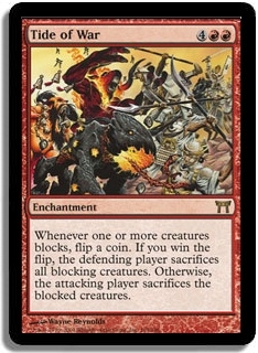 Whenever one or more creatures blocks, flip a coin. If you win the flip, the