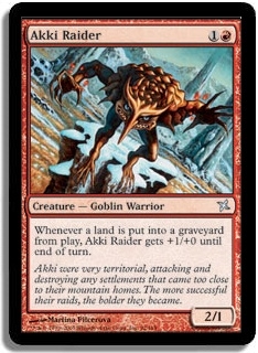 Whenever a land is put into a graveyard from play, Akki Raider gets +1/+0 until end of turn.