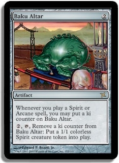 Whenever you play a Spirit or Arcane spell, you may put a ki counter on Baku Altar.