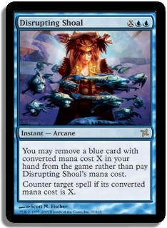 You may remove a blue card with converted mana cost X in your hand from the game rather than pay Disrupting Shoal's mana cost.