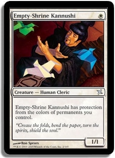 Empty-Shrine Kannushi has protection from the colors of permanents you control.