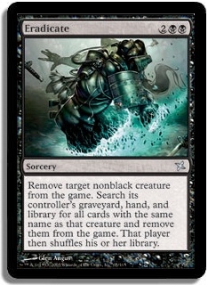 Search its controller's graveyard, hand, and library for all cards with the same name as that creature and remove them from the game.