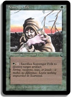 <G,T>: Sacrifice Scavenger Folk to destroy target artifact.