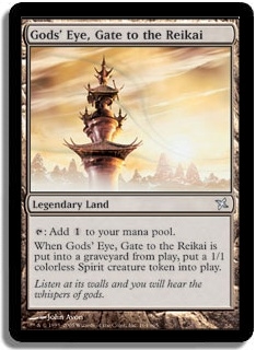When Gods' Eye, Gate to the Reikai is put into a graveyard from play, put a 1/1 colorless Spirit creature token into play.