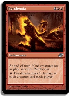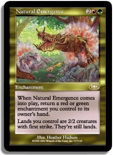 I was trying to keep this red/green. They require an enchantment on the field for this to work. Give them Natural Emergence, and then burn their creatures with Pyrohemia.