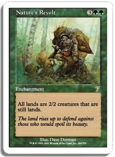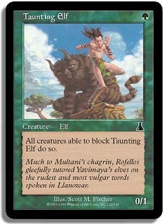First, use Nature's Revolt to turn all lands into creatures. Once you can pump your Taunting Elf up enough with Timberwatch Elf to withstand a lot of damage, attack. Your opponent will be required to block your elf with his/her lands and creatures.