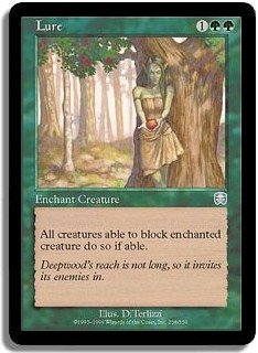 Death Pits of Rath ensures that anything the Baron does damage to is destroyed - instilling the +2/+2 buff. Lure is an effective way of eliminating a large number of your opponent's creatures, all the while making Baron Sengir an absolute powerhouse.