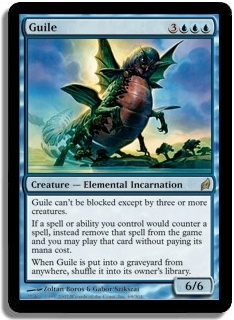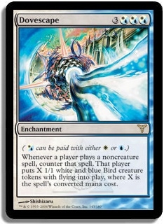 Bring Guile and Dovescape into play. Play any non-creature spell; this will trigger Dovescape's ability and counter the spell, and bringing doves into play. Dovescape's countering ability will trigger Guile's ability. You can now play the same, previously triggered ability again without paying the mana cost, which will again be countered by Dovescape, bringing doves into play. This repeats forever, granting you an endless army of doves.